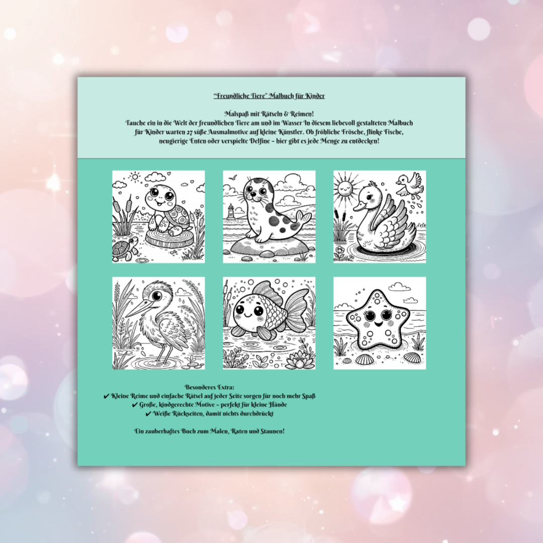 Freundliche Tiere – Am & im Wasser 🐟🌊 Ein liebevoll gestaltetes Malbuch mit Reimen & Rätseln für Kinder ab 3 Jahren