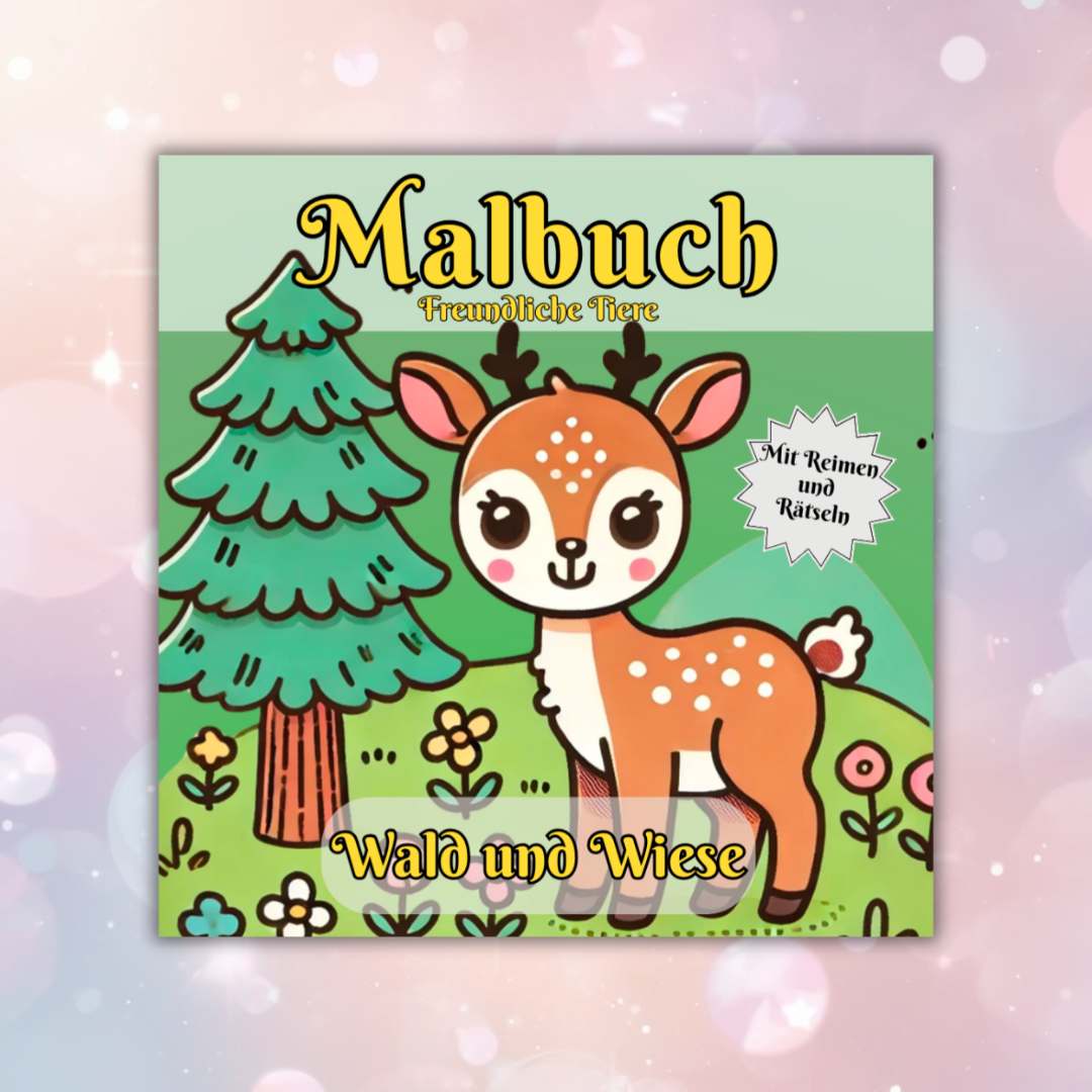 Freundliche Tiere – Wald & Wiese 🦊🌿 Ein zauberhaftes Malbuch mit Reimen & Rätseln für Kinder