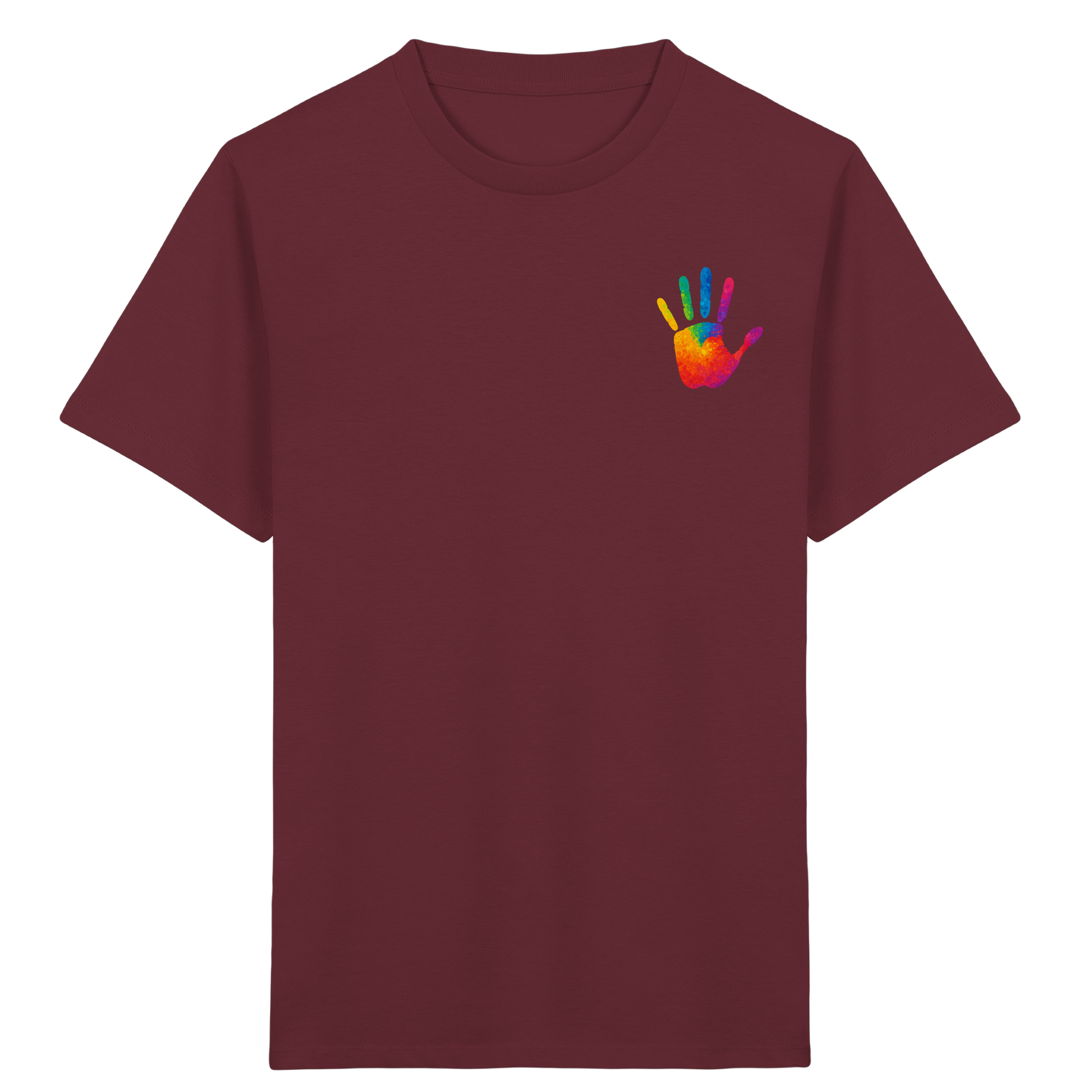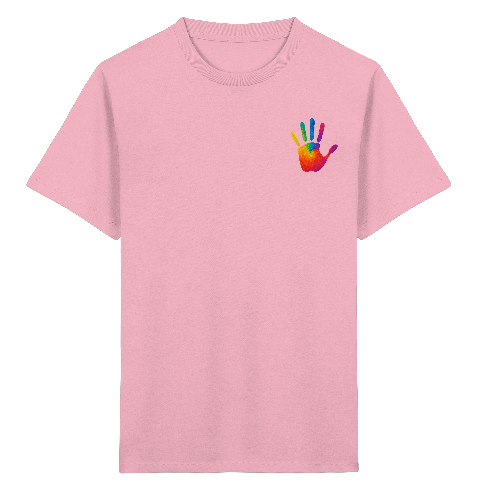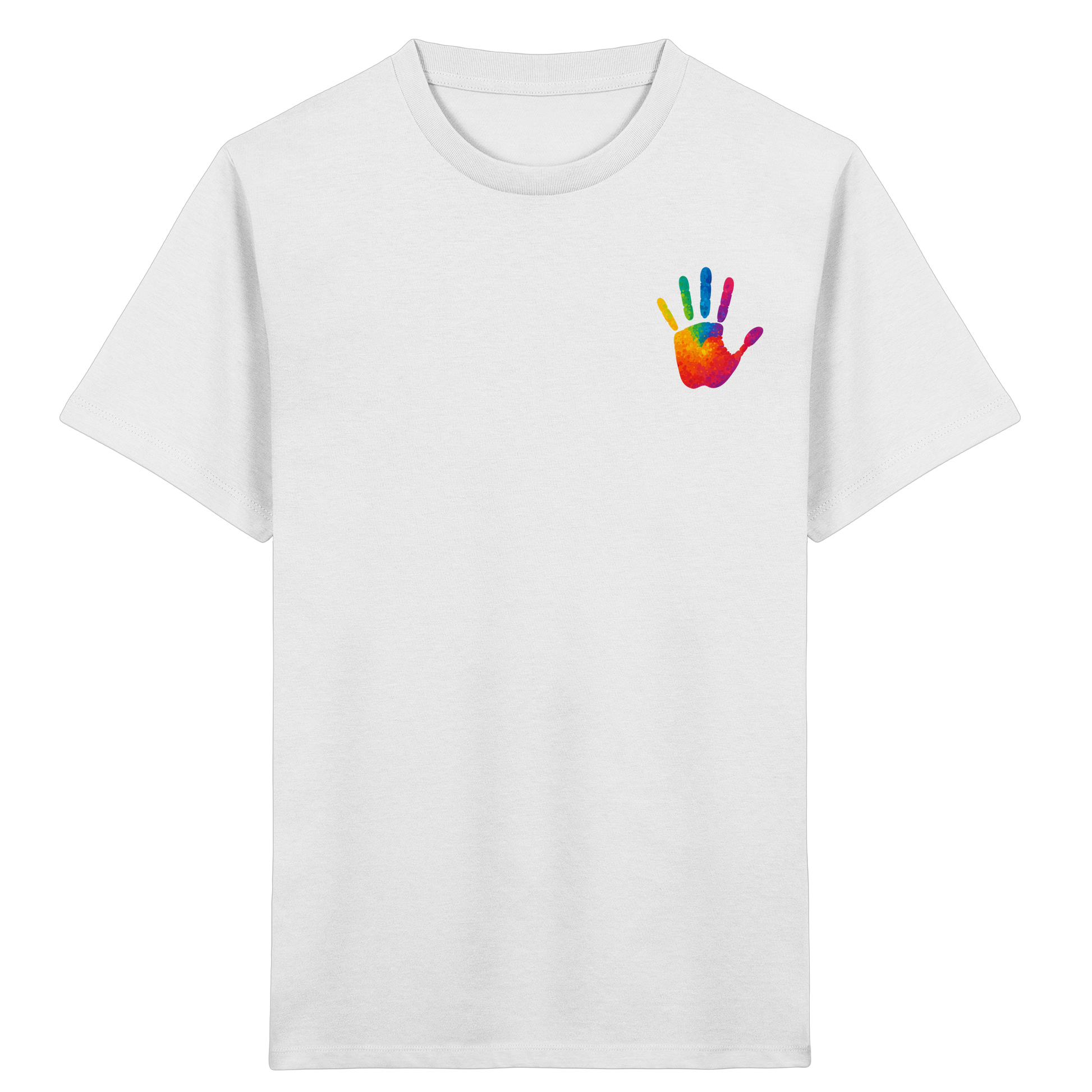 Dieses Kinder Bio-Shirt mit buntem Handabdruck ist mehr als nur ein Kleidungsstück – es ist ein Symbol für Gemeinschaft, Akzeptanz und die Einzigartigkeit jedes Kindes.