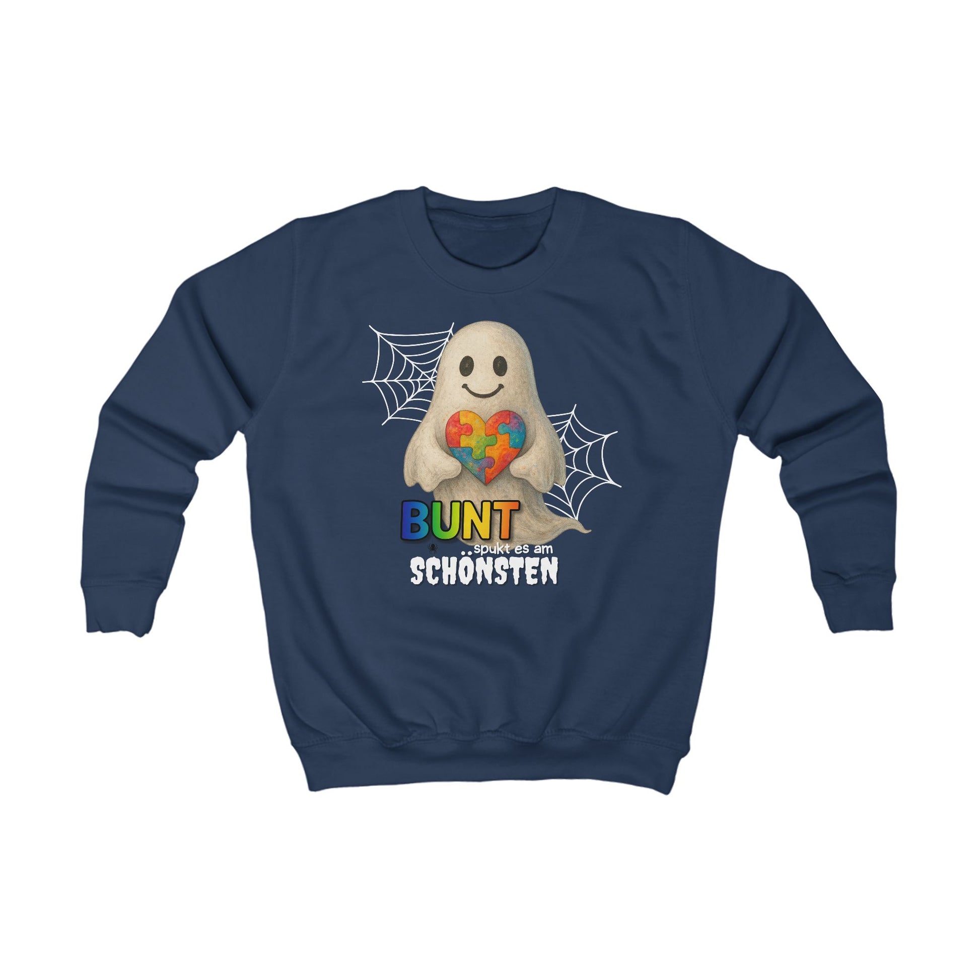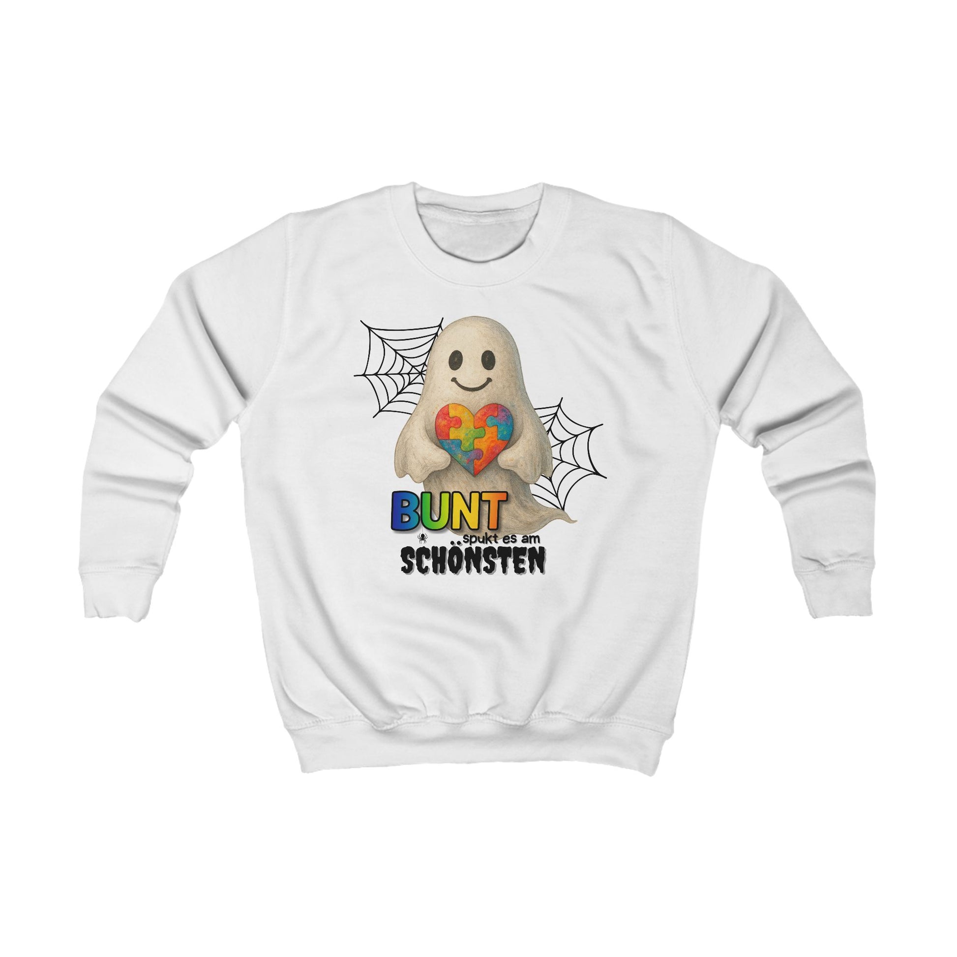 Mit unserem farbenfrohen Sweatshirt „Bunt spukt es am schönsten“ wird Halloween richtig fröhlich. Statt nur schwarz und gruselig bringt dieser kuschelige Pullover Freude, Farben und ein liebevolles Statement in die schaurige Jahreszeit.